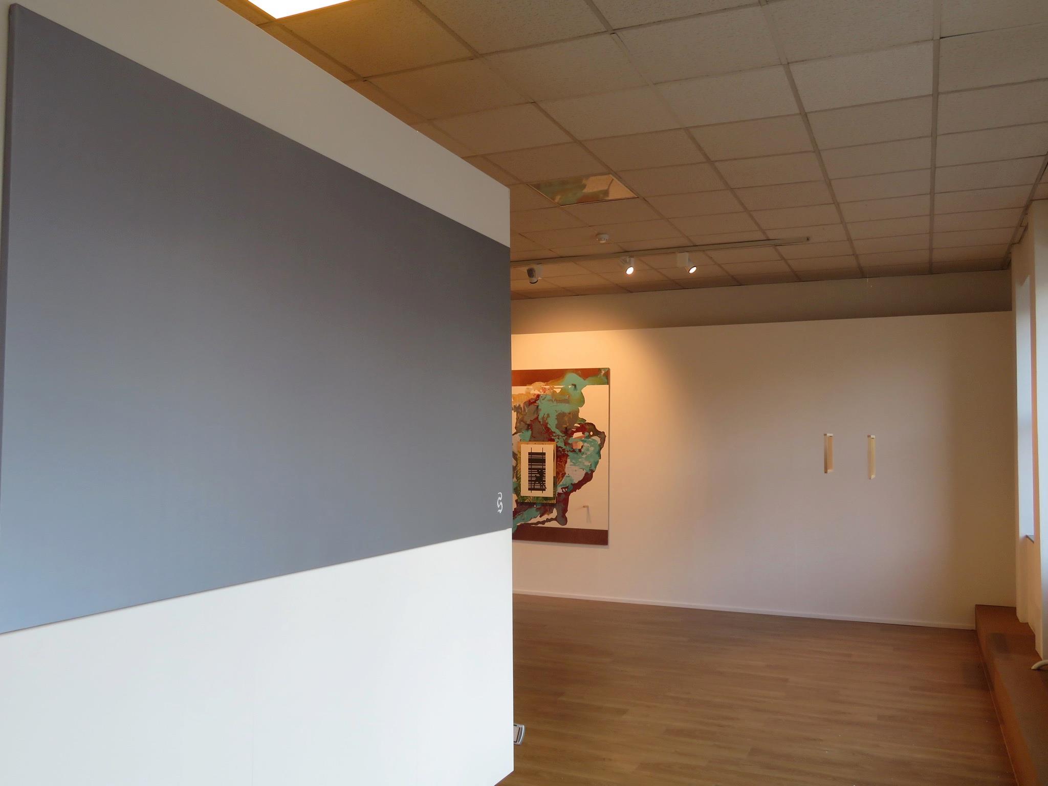 The project’s centrifugal irradiation starts with its communication, through works which are not shown as such in the exhibition : For instance, in the visual chosen for the invitation card, a picture whose subject and atmosphere evoke the atelier’s warmth. This photograph shows indeed a greyish portrait, the pictorial essay of a conceptual artist acting in a deliberately anonymous and confidential way.